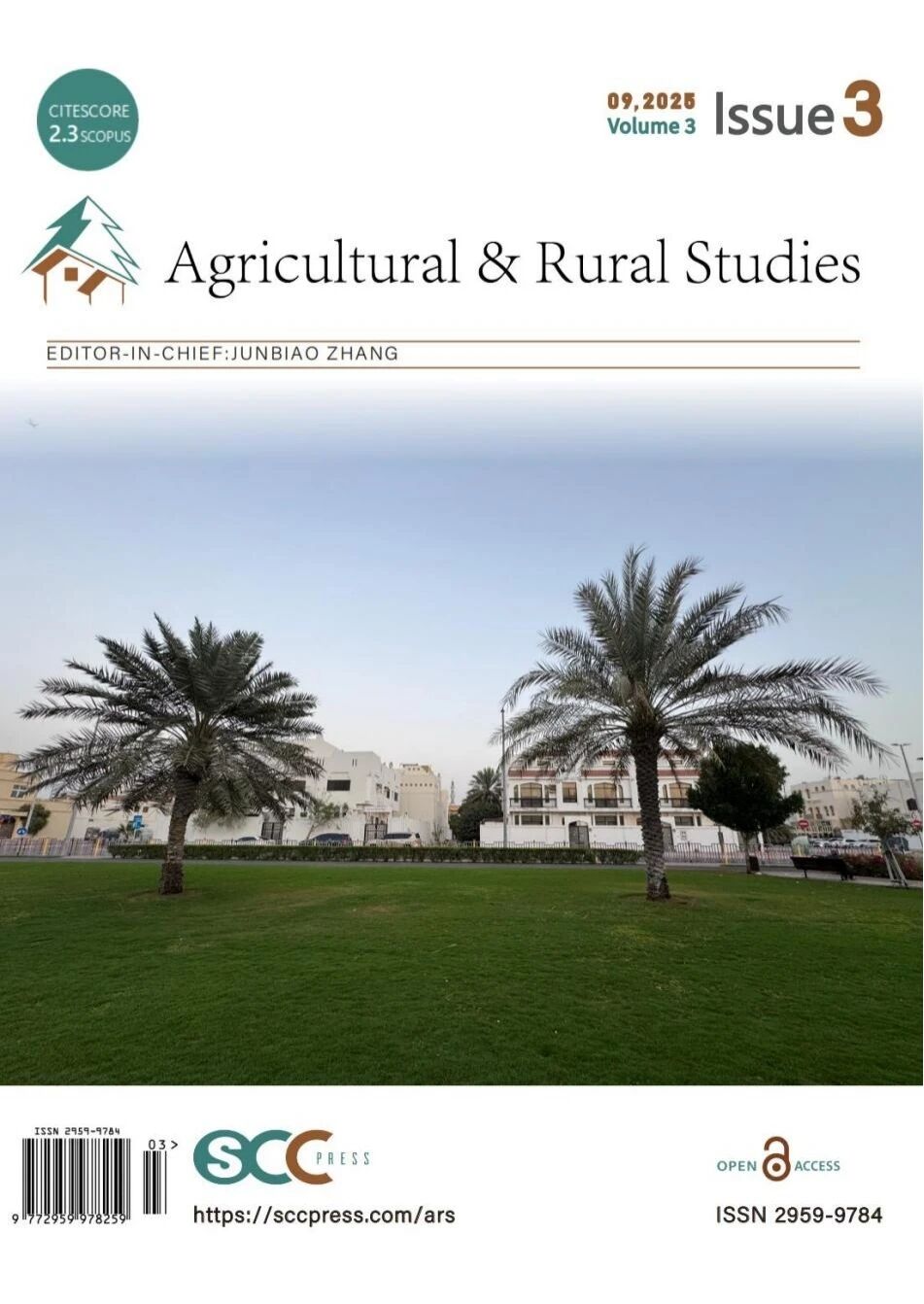 近日,《Agricultural & Rural Studies》(https://sccpress.com/ars)第三卷第三期正式上线,共发表6篇文章:第1篇是中国Yihang Hu等关于森林的力量:基于GIS-LCA技术的中国林业碳汇时空格局研究的研究论文;第2篇是墨西哥Diosey Ramón Lugo-Morin关于探索数字经济对墨西哥农村影响的研究论文;第3篇是尼日利亚Oladimeji Idowu Oladele等关于生产与流通因素对尼日利亚良种体系的影响:对推广气候韧性生产与粮食系统的启示的研究论文;第4篇是喀麦隆Claudine Vounba等关于喀麦隆萨赫勒地区气候变化的差异化适应动态:多维脆弱性背景下的地方感知与农业韧性的研究论文;第5篇是印度Mahadev Bera等关于综合自然资源管理与可持续生计:基于生态系统的可持续发展与社区韧性方法的综述;第6篇是阿联酋Doris Ying Ying Tang关于推进椰枣多功能资源的可持续利用:面向农工业应用的研究论文。