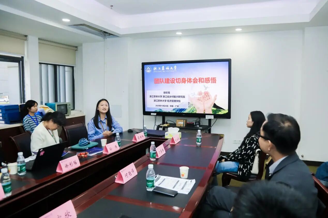 在随后的“数字生态与绿色发展团队建设研讨”环节,徐彩瑶副教授结合自身实践,作了题为《团队建设切身体会和感悟》的主题分享,深度结合其所在“数字生态与绿色发展学术团队”的切身体会,系统分享了团队在文化建设、学生培养与协同创新机制探索中的实践经验与思考。整场报告引发了与会者的强烈共鸣与积极互动。