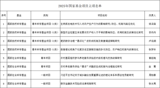 近日,国家自然科学基金委和全国哲学社会科学工作办公室分别公布了2025年项目评审结果,我院分别有4项国家自科基金项目和4项国家社科基金项目拟立项。