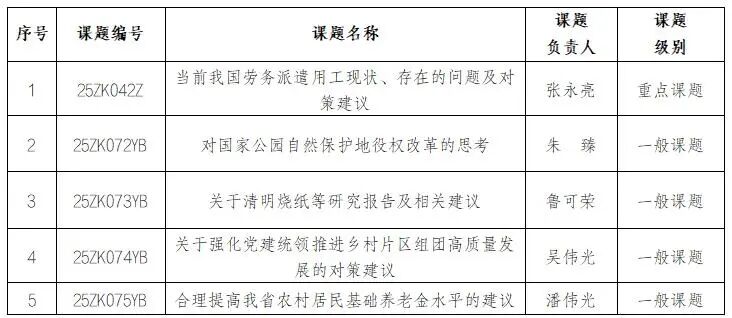 近日,浙江省哲学社会科学工作办公室公布了2025年度浙江省新型智库课题(第一批)立项名单,我院张永亮教授的《当前我国劳务派遣用工现状、存在的问题及对策建议》获批2025年度浙江省新型智库课题(第一批)重点项目立项。朱臻教授的《对国家公园自然保护地役权改革的思考》、鲁可荣教授的《关于清明烧纸等研究报告及相关建议》、吴伟光教授的《关于强化党建统领推进乡村片区组团高质量发展的对策建议》、潘伟光教授的《合理提高我省农村居民基础养老金水平的建议》获批2025年度浙江省新型智库课题(第一批)一般项目立项。