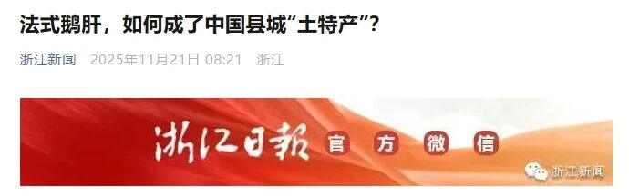 近日,《浙江新闻》刊出对我院执行院长潘伟光教授的采访。依托淮河之畔的水土资源优势与养鹅传统,安徽霍邱抓住市场机遇引入朗德鹅品种,通过政策扶持、技术创新与产业链拓展,推动法式鹅肝实现本土化量产并迈向国际市场。