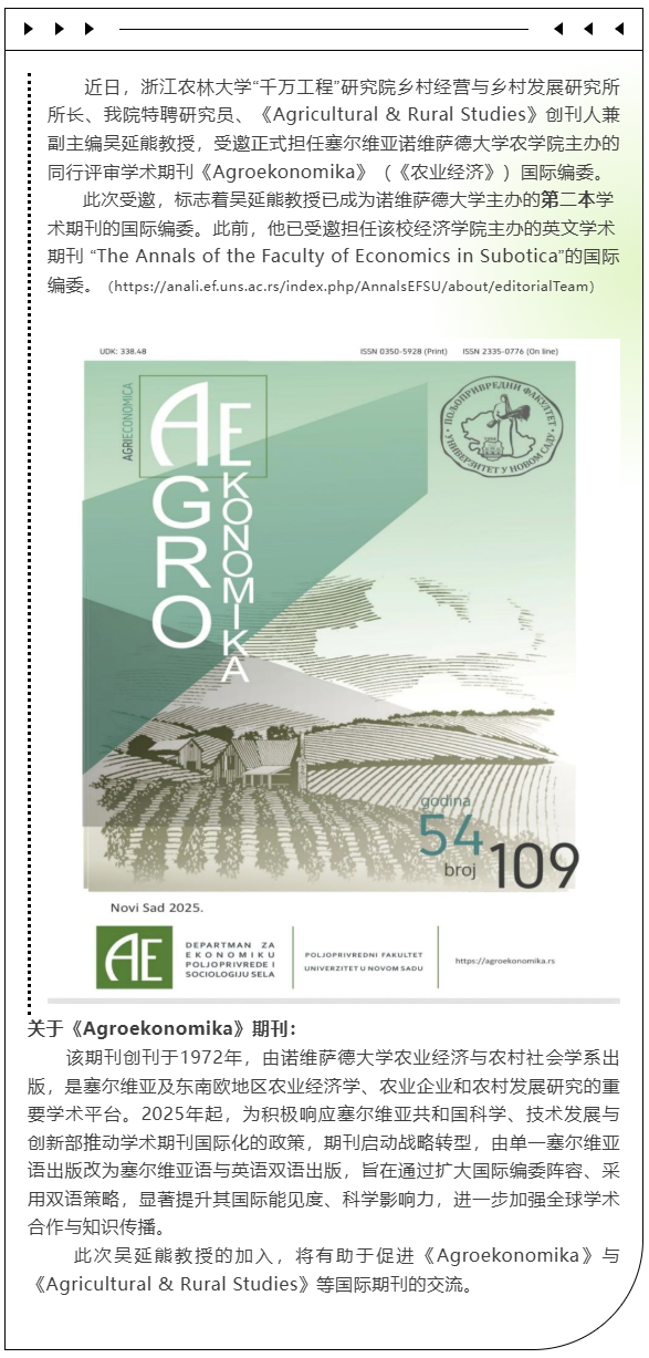 国际期刊 | 吴延熊教授受聘塞尔维亚《Agroekonomika》期刊国际编委