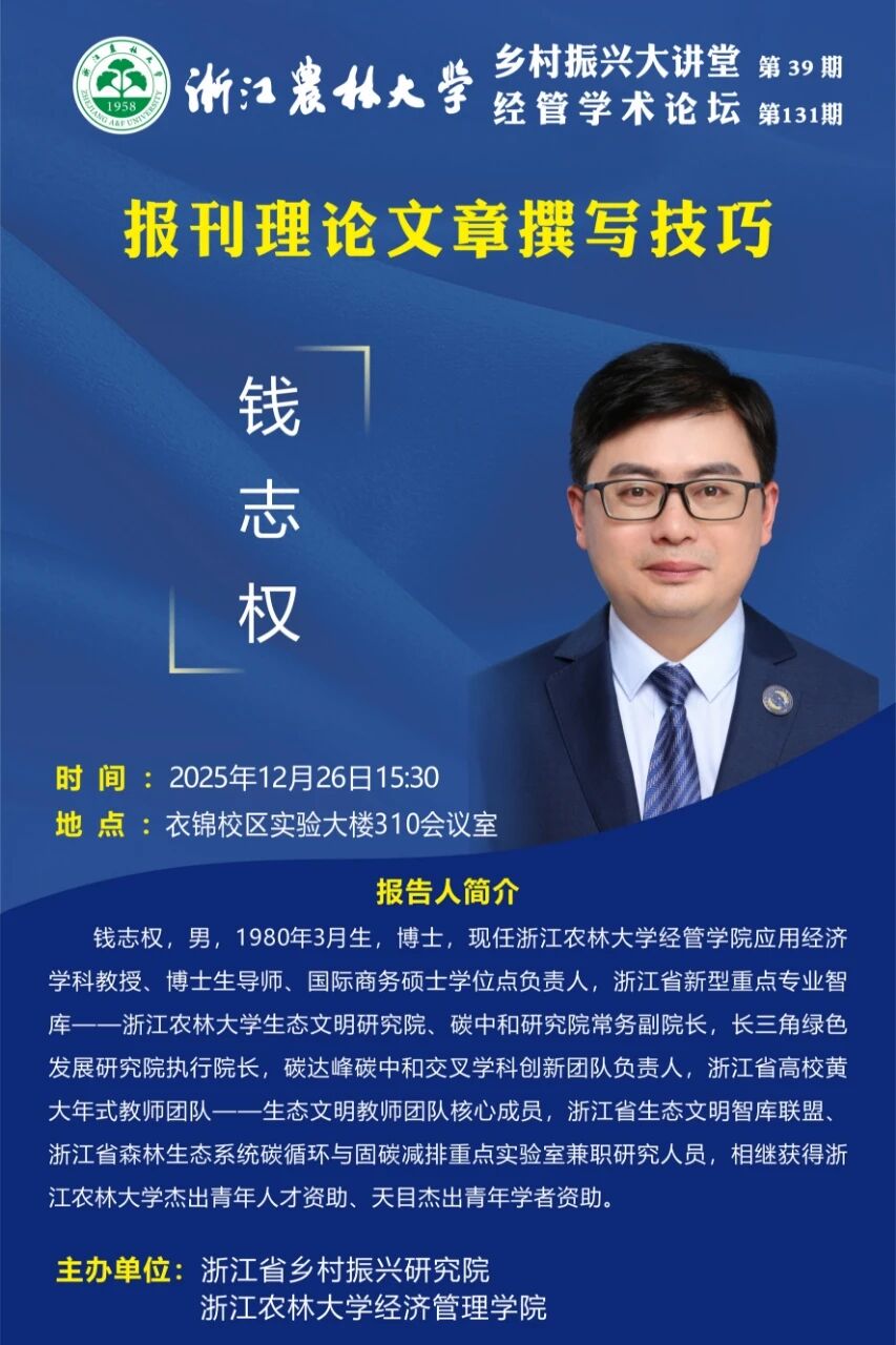 “乡村振兴大讲堂”(第39期)开讲啦!